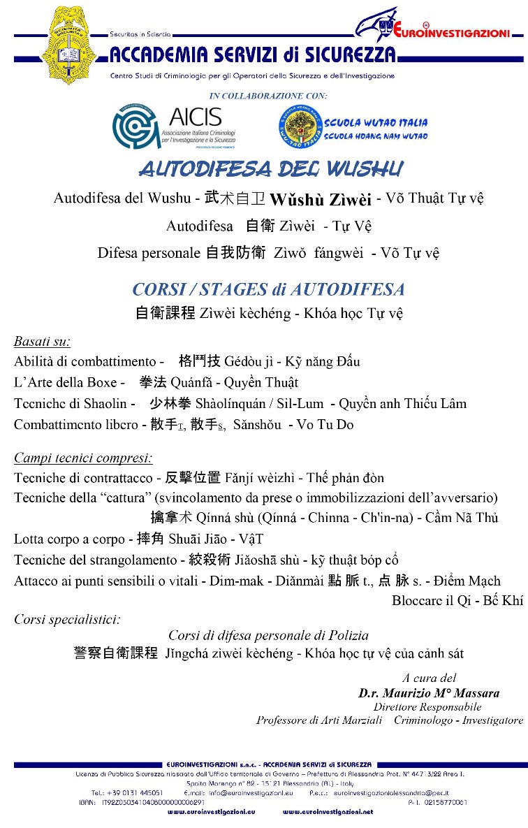 Corsi specialistici sulla tecnica e la cultura dell'AUTODIFESA delle Arti Marziali sino- viet